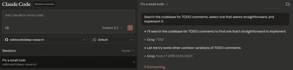 When you start a chat and ask Claude to do something in the app, it clones your Git repo into a virtual sandbox and starts writing code. It can autonomously run until the task is complete, at which point you can create a Pull Request and review the work. If it’s good, merge it into main. If not, toss it.
